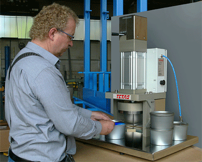 Die Vatronic 51 ist eine fahrbare manuell bedienbare Vakuumverschliessanlage, für konische 1 kg und 2.5 kg Dosen.